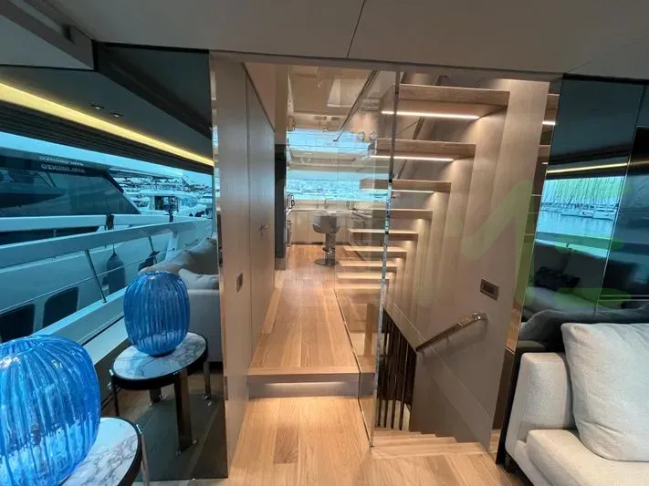 FELICITA is a semi-displacement mono-hull flybridge motoryacht, with a beam of 23' 8" (7.21 meters), offering stability and comfort during near coastal and inland cruising. The semi-displacement hull shape and draft of 5' 7" (1.7 meters) further enhances her speed, allowing quick sprints from port to port, making her ideal for visiting the maximum number of destinations on your itinerary in the shortest period.