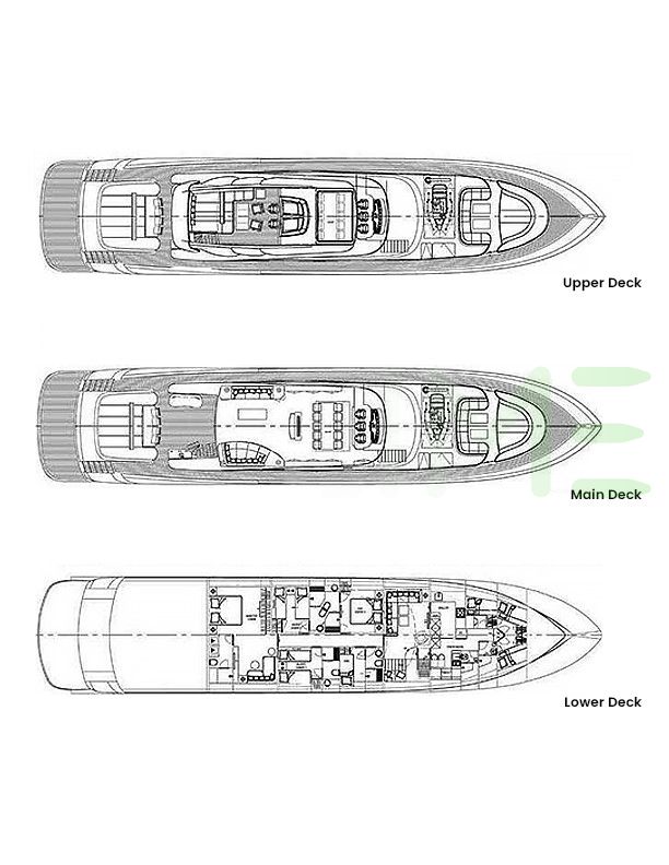 Request plans that include the layout of staterooms, guest areas, and outdoor spaces, as well as crew quarters and work areas.