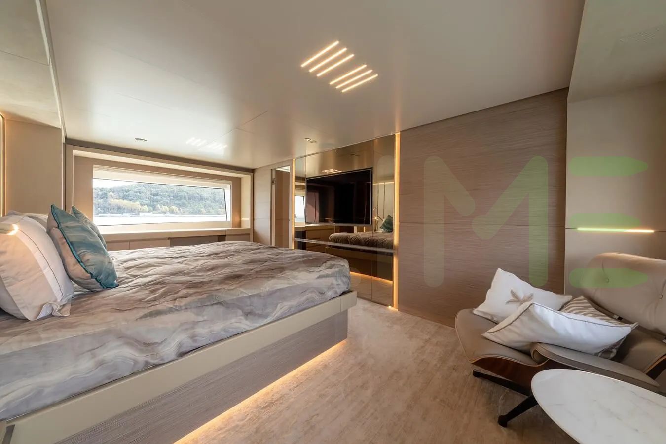 Her features include underwater lights, deck jacuzzi, WiFi and air conditioning.