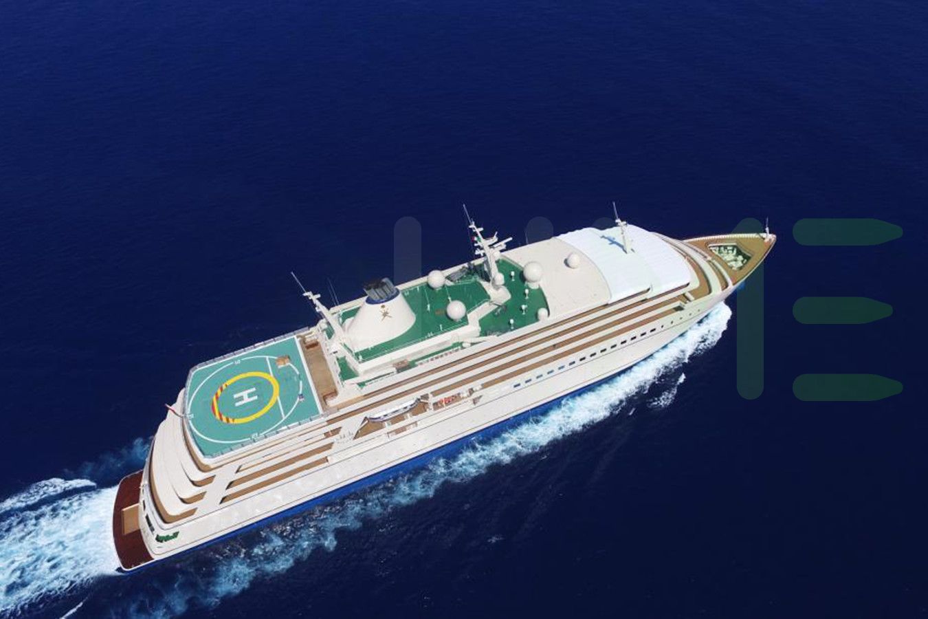 The FULK AL SALAMAH yacht is a 538-foot (164m) luxury motoryacht built in 2016 by yacht builder, Mariotti Yachts, located in Italy. The styling of the FULK AL SALAMAH yacht features exterior design by Studio de Jorio and interior design by Studio de Jorio.