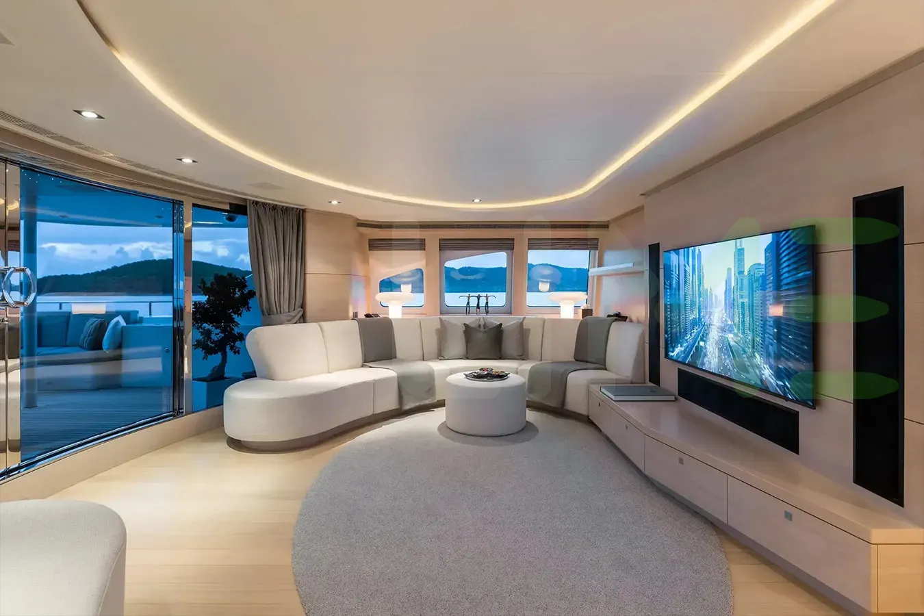 G3 is a semi-displacement mono-hull luxury motoryacht, with a beam of 27' 11" (8.5 meters), offering stability and comfort during near coastal and inland cruising. The semi-displacement hull shape and draft of 8' 2" (2.5 meters) further enhances her speed, allowing quick sprints from port to port, making her ideal for visiting the maximum number of destinations on your itinerary in the shortest period.