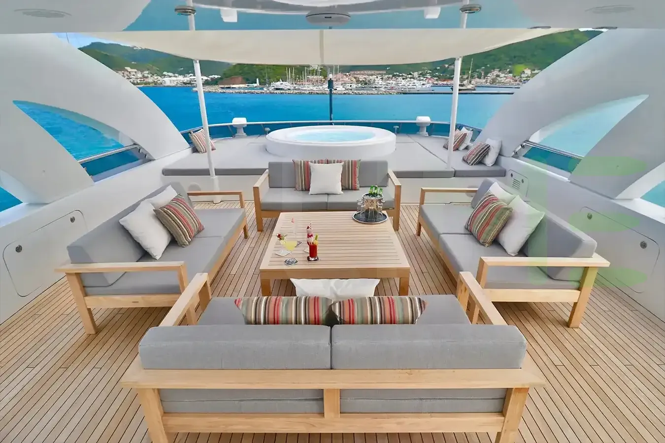 A charter on G3 is comfortable and convenient thanks to the provided amenities, particularly a beach club for you to relax on the edge of the water. Sit back with a glass of champagne in the deck jacuzzi.