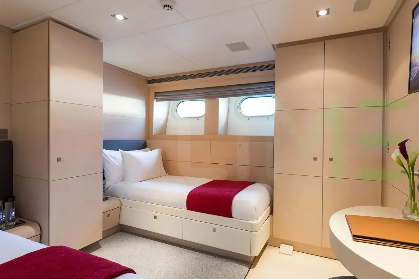 Up to 10 guests can be accommodated on board the yacht G3 in 5 staterooms. G3 also includes accommodations for 9 crew members, including the yacht’s captain. Whether you envision private escapes or unforgettable voyages, you're invited to discover a world where elegance meets adventure.