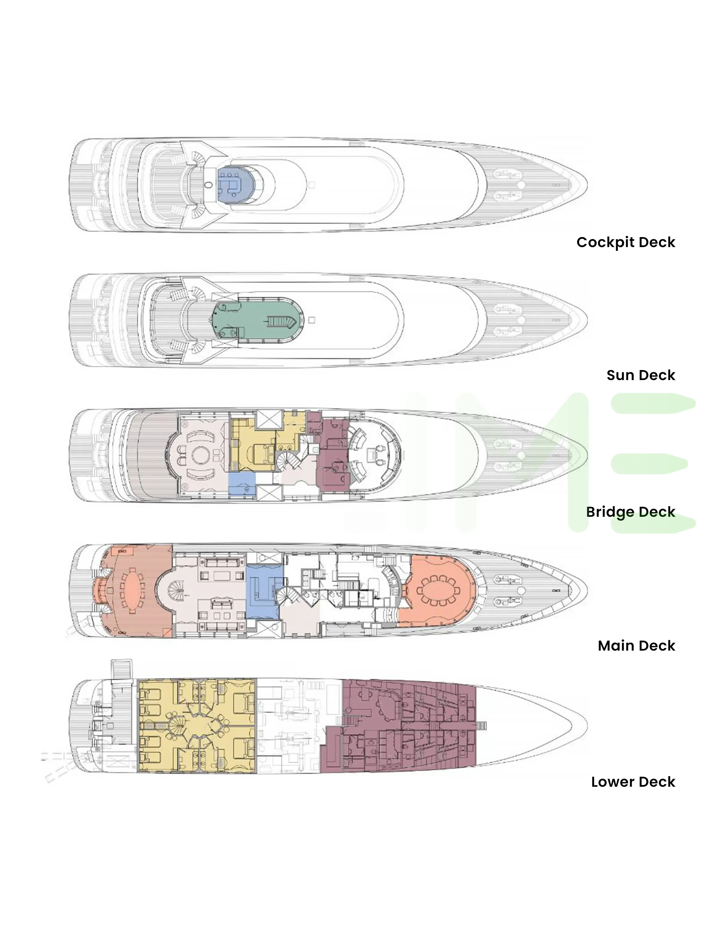 Request plans that include the layout of staterooms, guest areas, and outdoor spaces, as well as crew quarters and work areas.
