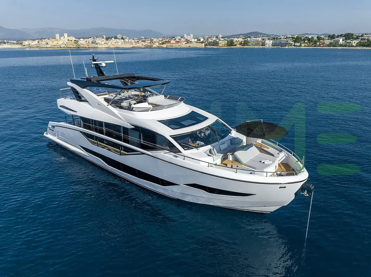 The GLASAX yacht for sale is a 89-foot (27m) luxury motoryacht built in 2022 by yacht builder, Sunseeker, located in the United Kingdom. The styling of the GLASAX yacht features exterior design by Sunseeker and interior design by Sunseeker.