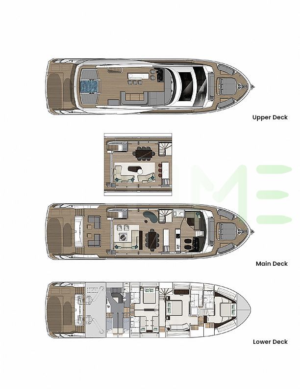Request plans that include the layout of staterooms, guest areas, and outdoor spaces, as well as crew quarters and work areas.