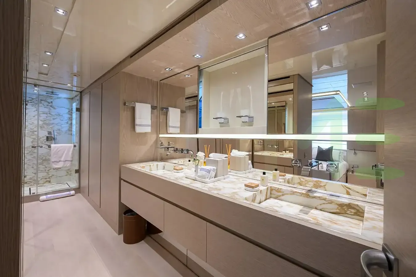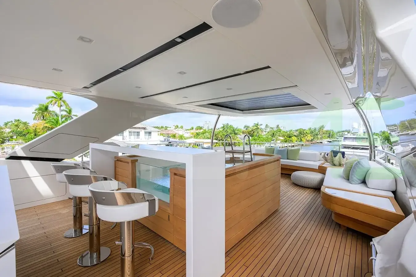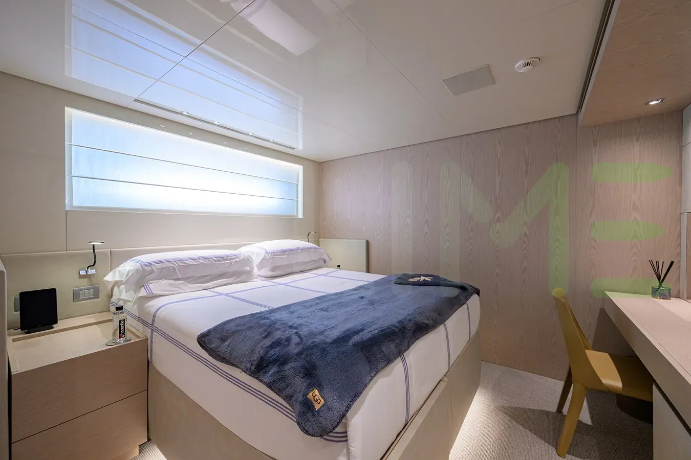 Her features include underwater lights, deck jacuzzi, WiFi and air conditioning.