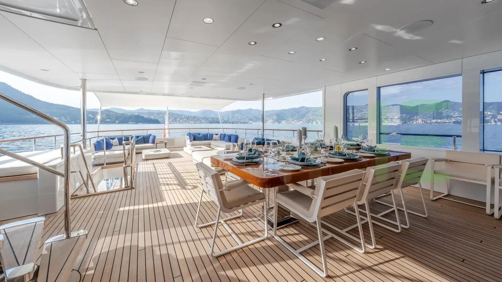 Enhanced by her steel full-displacement hull, and aluminium superstructure, a higher level of seaworthiness and comfort for those on board the GO yacht for sale has been achieved. The visual appeal of the exterior is complimented by the rich color and distinctive grain patterns of teak decks that lend an air of sophistication to the yacht's appearance.