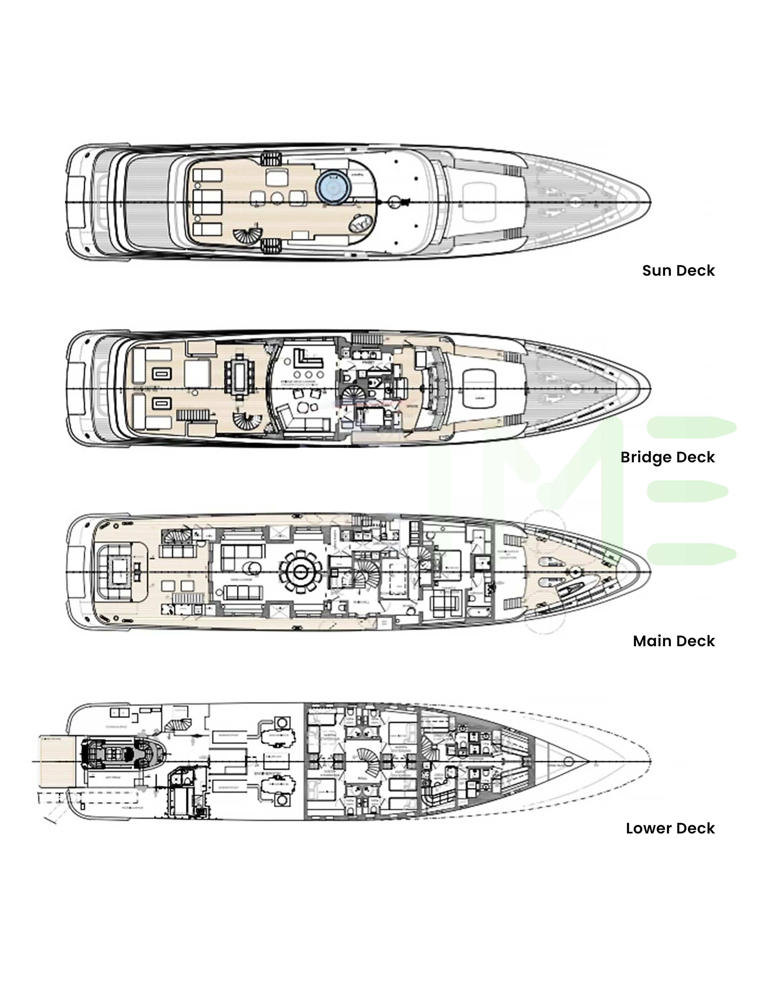 Request plans that include the layout of staterooms, guest areas, and outdoor spaces, as well as crew quarters and work areas.