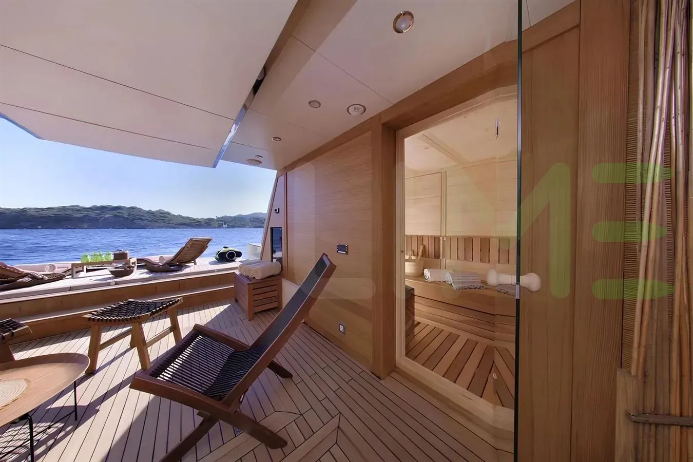 - Generous sundeck with Jacuzzi, sumptuous sun lounging areas and a bar