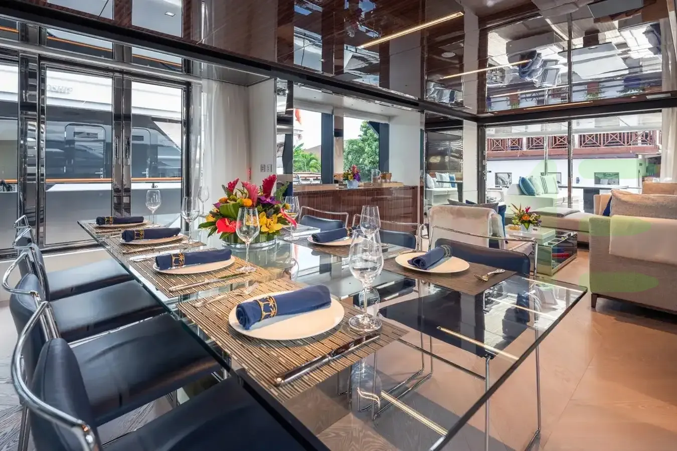 To respect the privacy of the GRAYSKY yacht owner and guests, the GRAYSKY yacht location is privately available to prospective clients only. For details about the current location, winter and summer cruising regions, and the availability of the GRAYSKY yacht for charter, along with additional insider information about alternative yachts similar to GRAYSKY, contact a LIME yacht charter broker for a full yacht analysis.