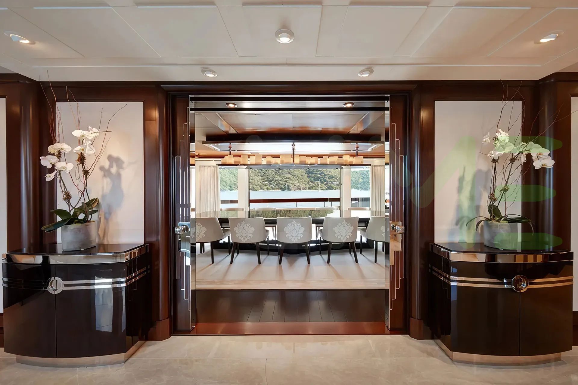 Up to 12 guests can be accommodated on board the yacht HAMPSHIRE in 7 staterooms. HAMPSHIRE also includes accommodations for 17 crew members, including the yacht’s captain. Whether you envision private escapes or unforgettable voyages, you're invited to discover a world where elegance meets adventure.