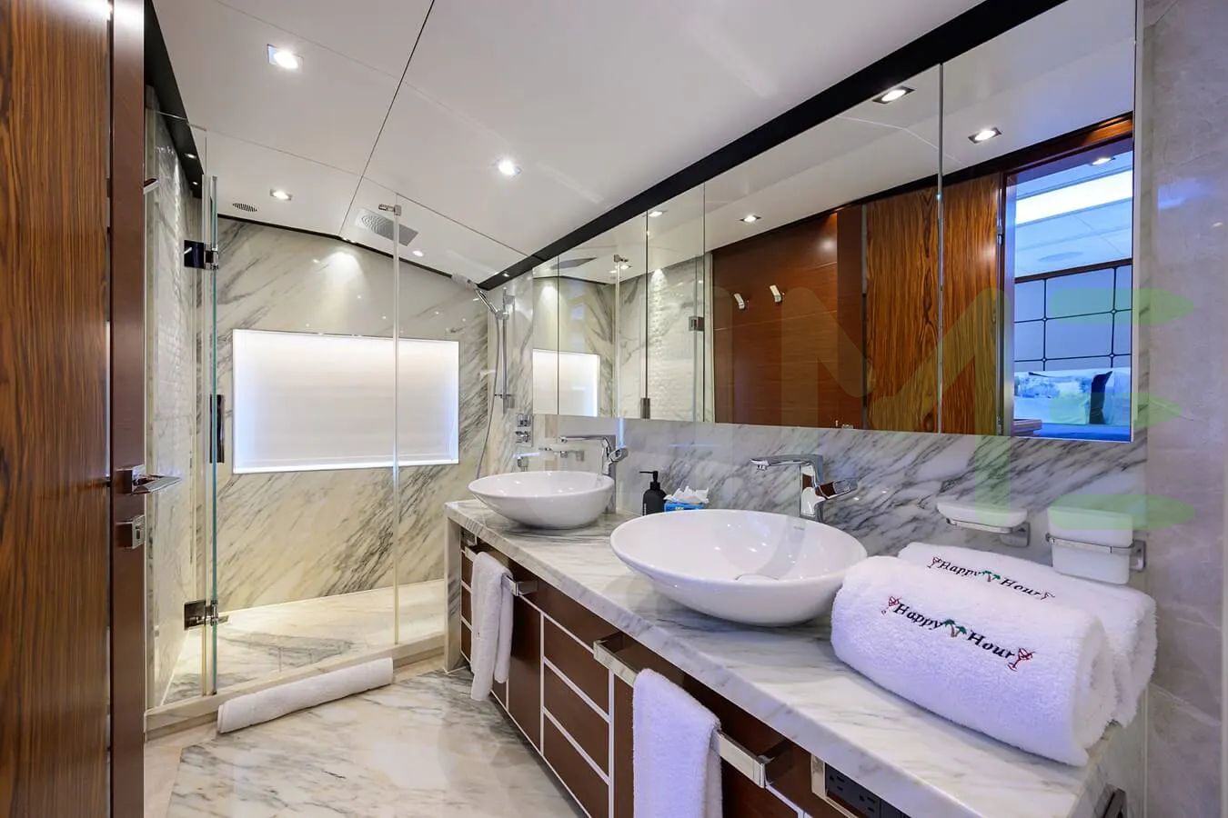 Up to 10 guests can be accommodated on board the yacht HAPPY HOUR in 5 staterooms. HAPPY HOUR also includes accommodations for 5 crew members, including the yacht’s captain. Whether you envision private escapes or unforgettable voyages, you're invited to discover a world where elegance meets adventure.