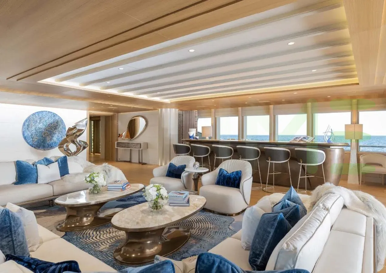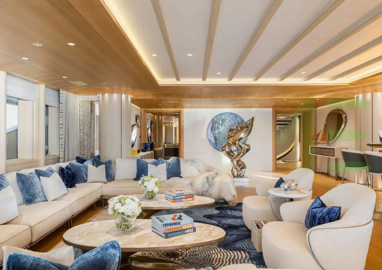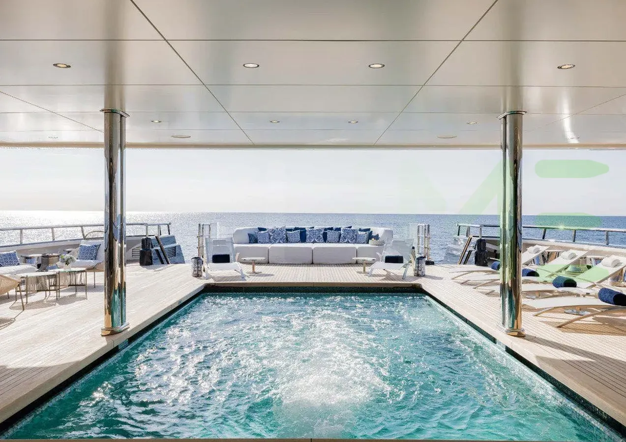 Her features include piano, spa, beauty salon, satellite communications, underwater lights, beach club, gym, deck jacuzzi, WiFi and air conditioning.