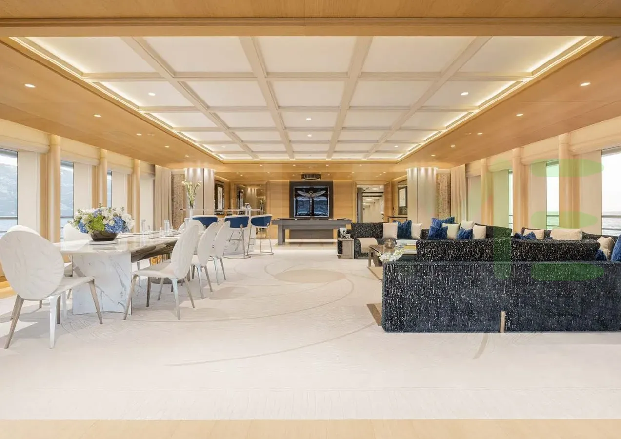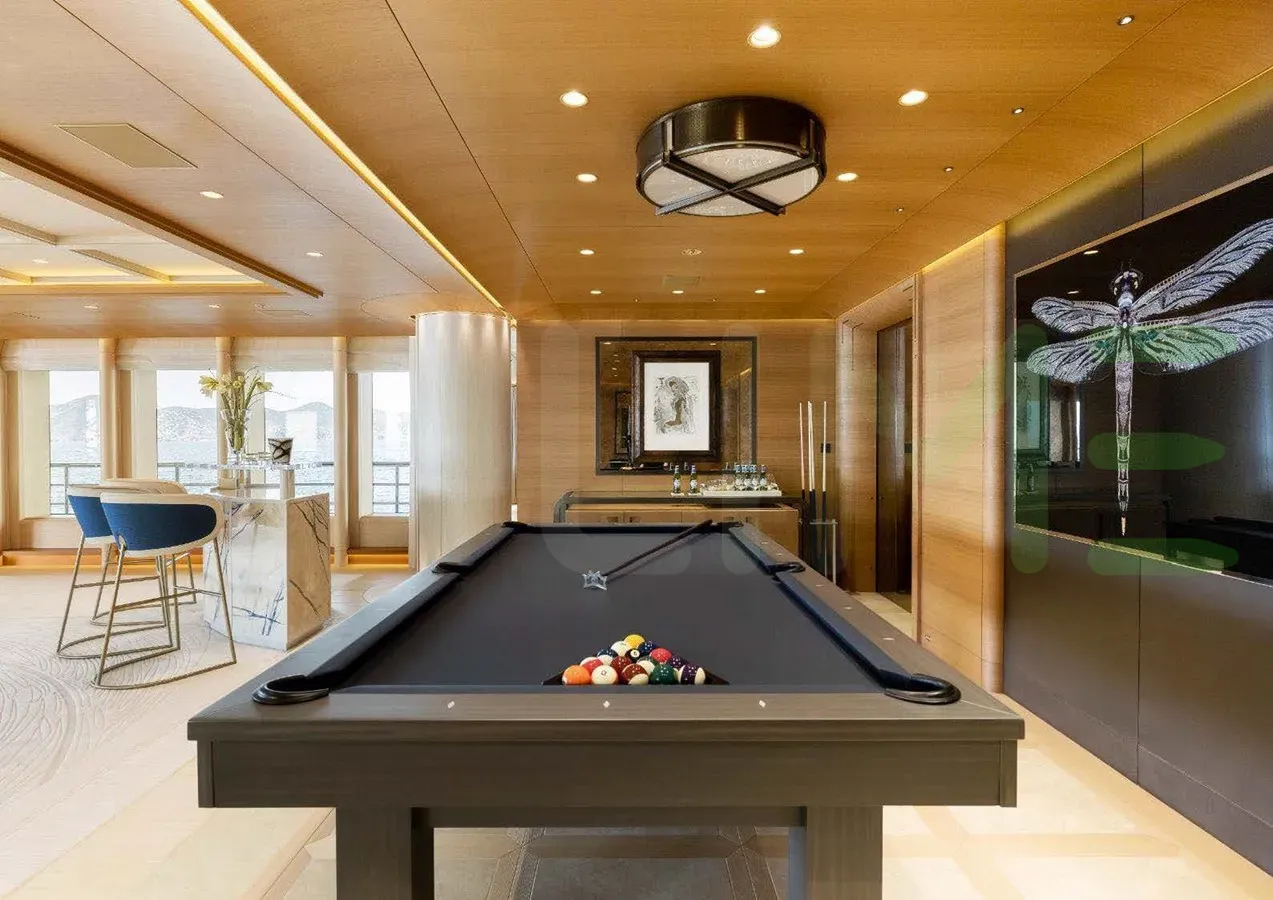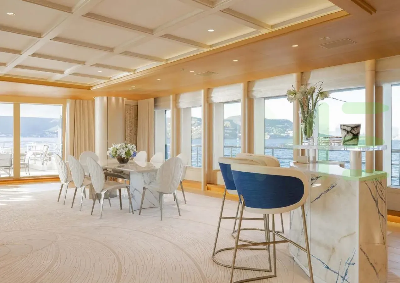 Her features include piano, spa, beauty salon, satellite communications, underwater lights, beach club, gym, deck jacuzzi, WiFi and air conditioning.