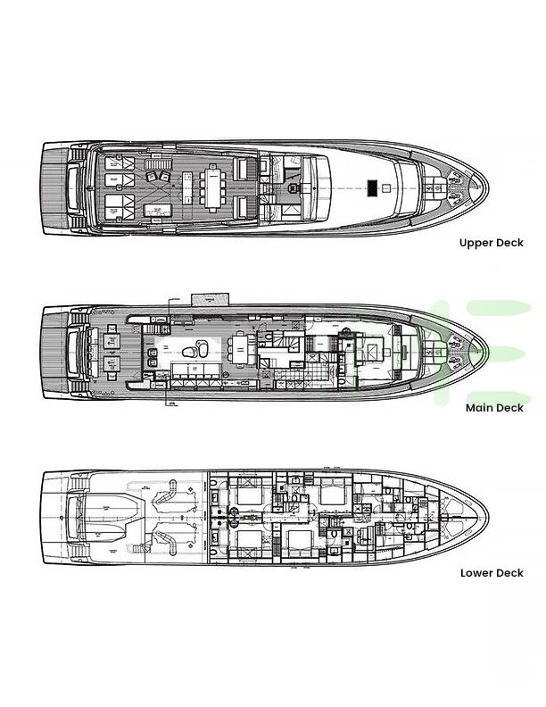 Request plans that include the layout of staterooms, guest areas, and outdoor spaces, as well as crew quarters and work areas.