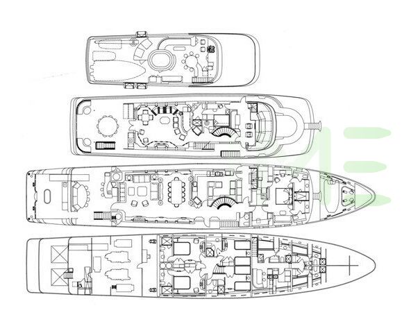Request plans that include the layout of staterooms, guest areas, and outdoor spaces, as well as crew quarters and work areas.