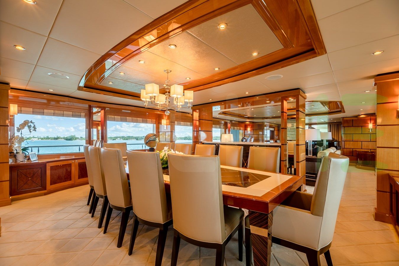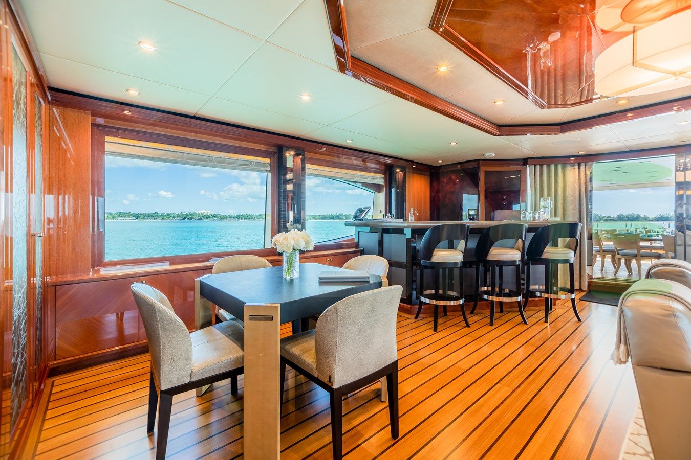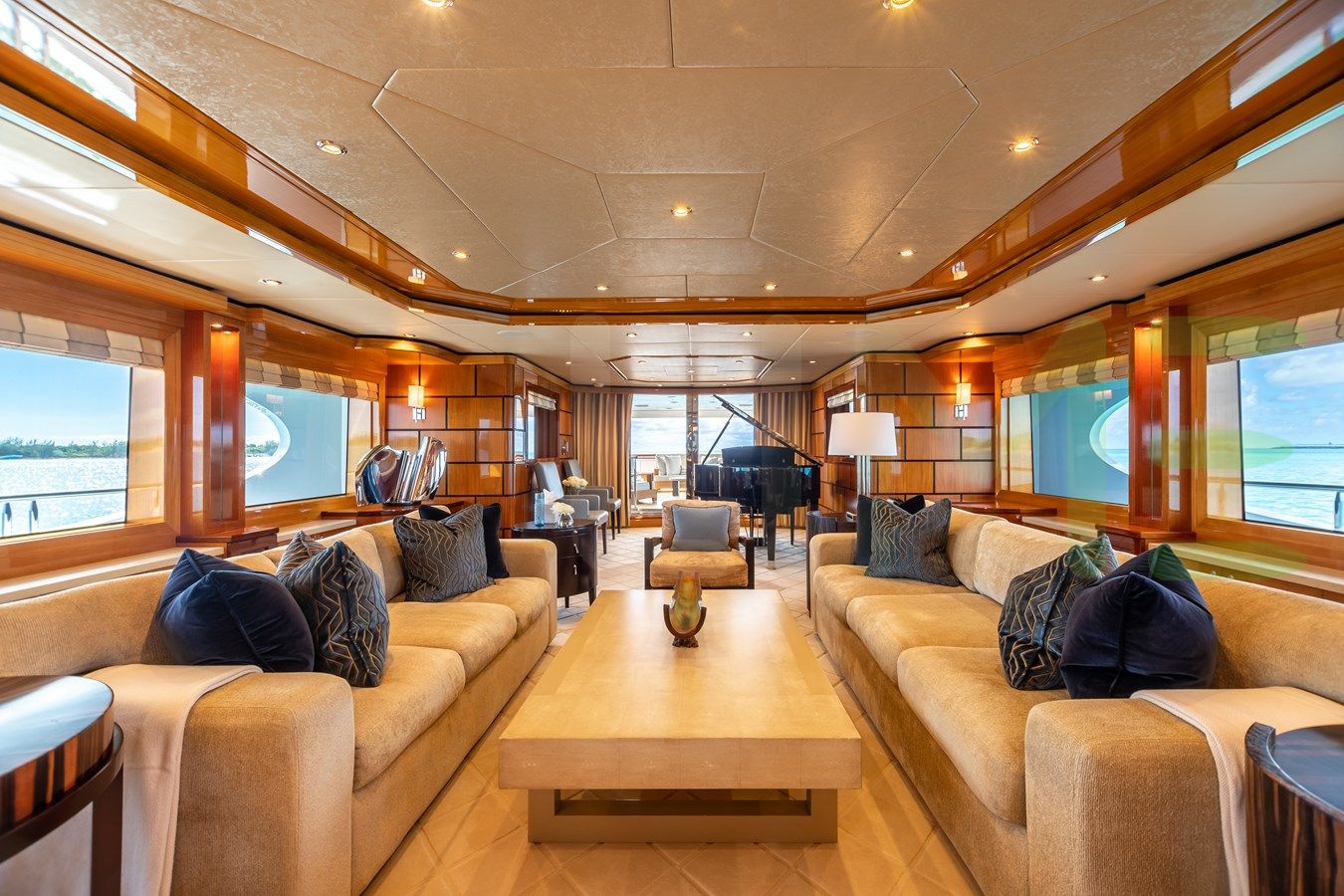 - Spacious main salon featuring an open-plan layout with generous seating and a dining area of 12 guests