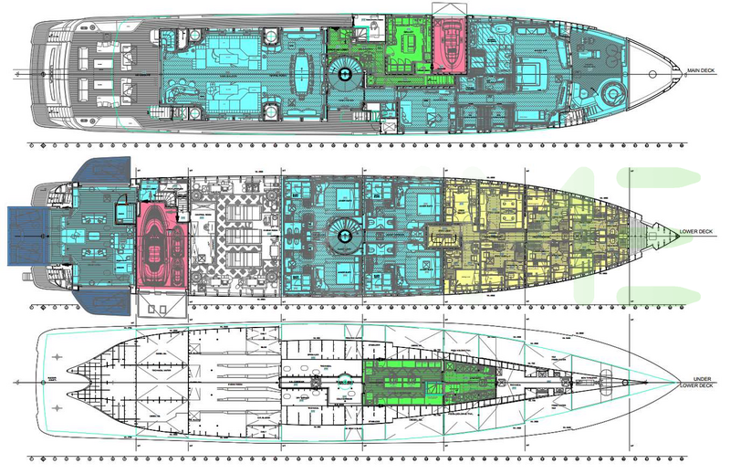 Request plans that include the layout of staterooms, guest areas, and outdoor spaces, as well as crew quarters and work areas.