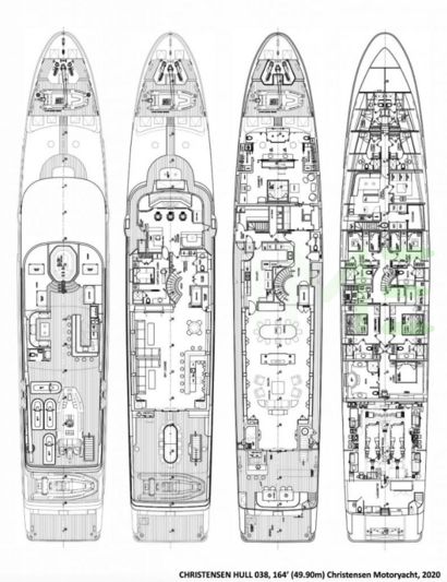 Request plans that include the layout of staterooms, guest areas, and outdoor spaces, as well as crew quarters and work areas.