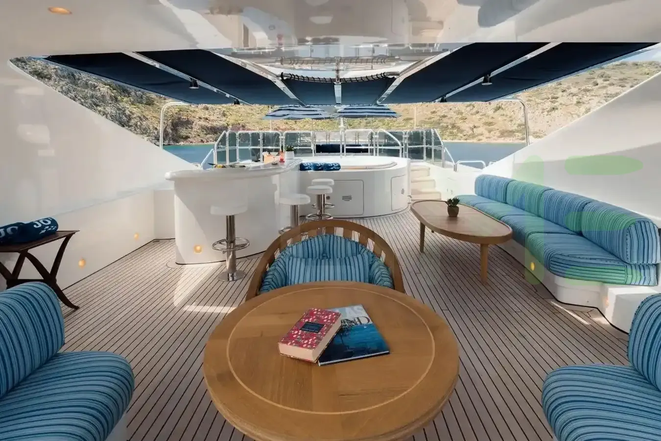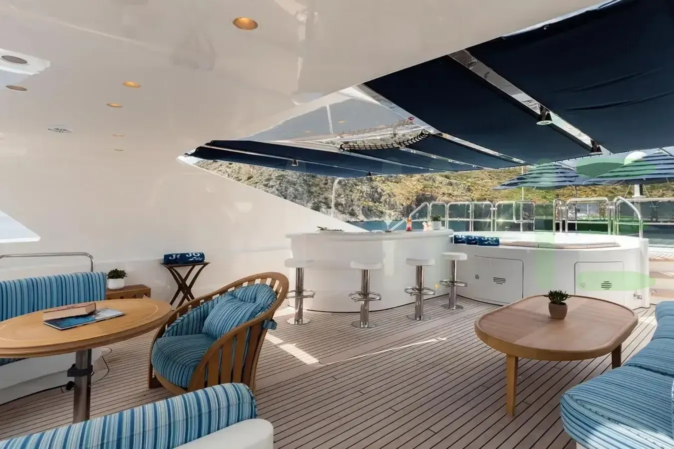 A charter on Jo I is comfortable and convenient thanks to the provided amenities, notably a dancefloor where you and your guests can celebrate in style. Soak up the bubbles in style in the deck jacuzzi.