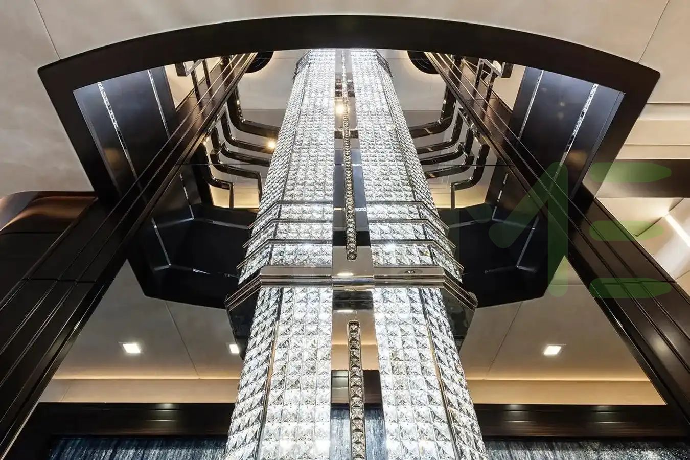 - Main salon bar finished in Macassar and backlit onyx
