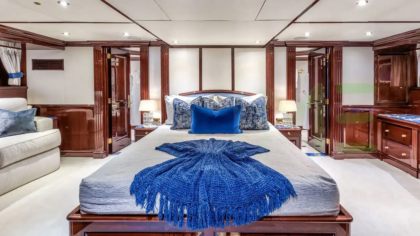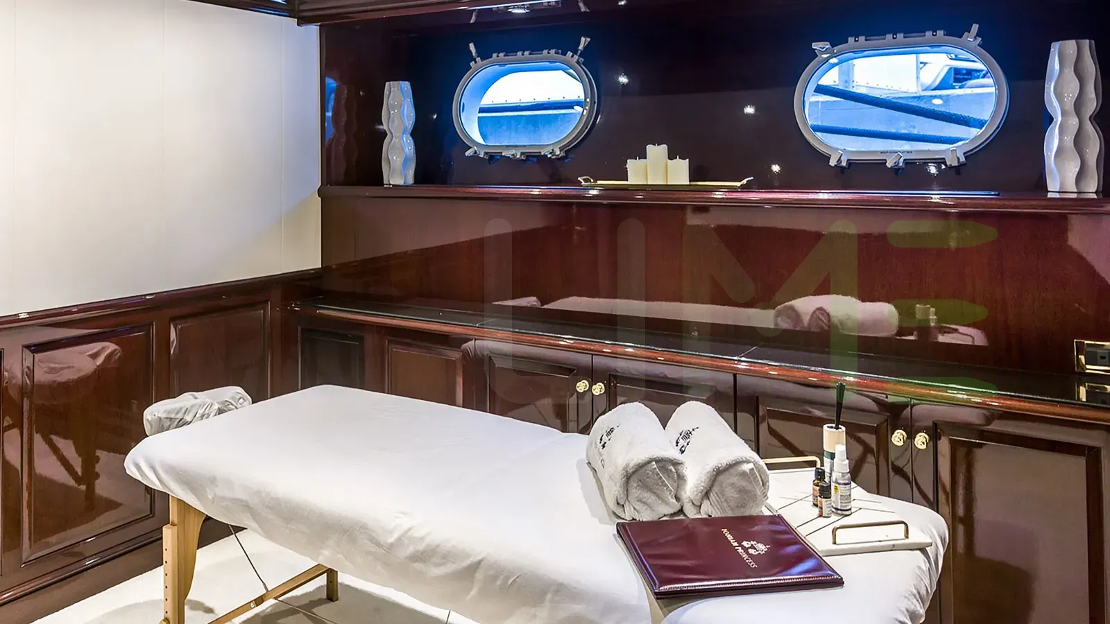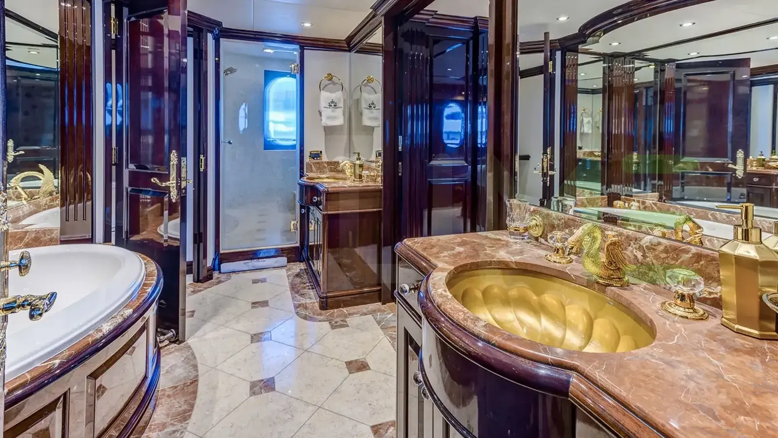 Her features include a gym, deck jacuzzi, WiFi and air conditioning.