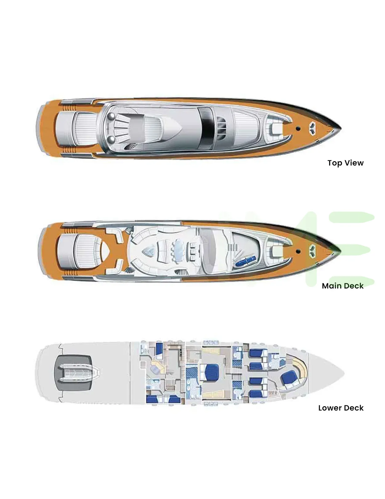 Request plans that include the layout of staterooms, guest areas, and outdoor spaces, as well as crew quarters and work areas.