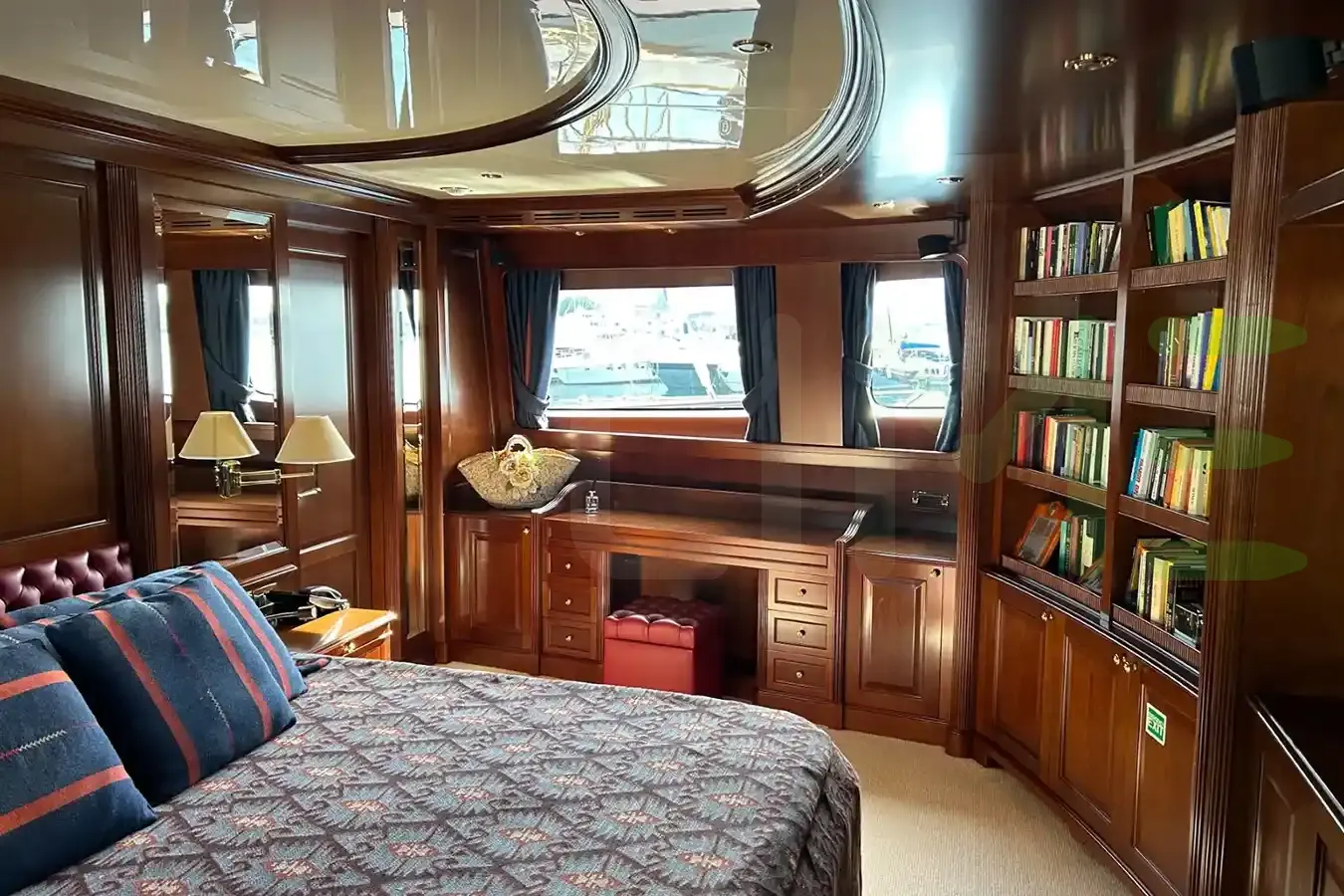 Her features include underwater lights, deck jacuzzi, WiFi and air conditioning.