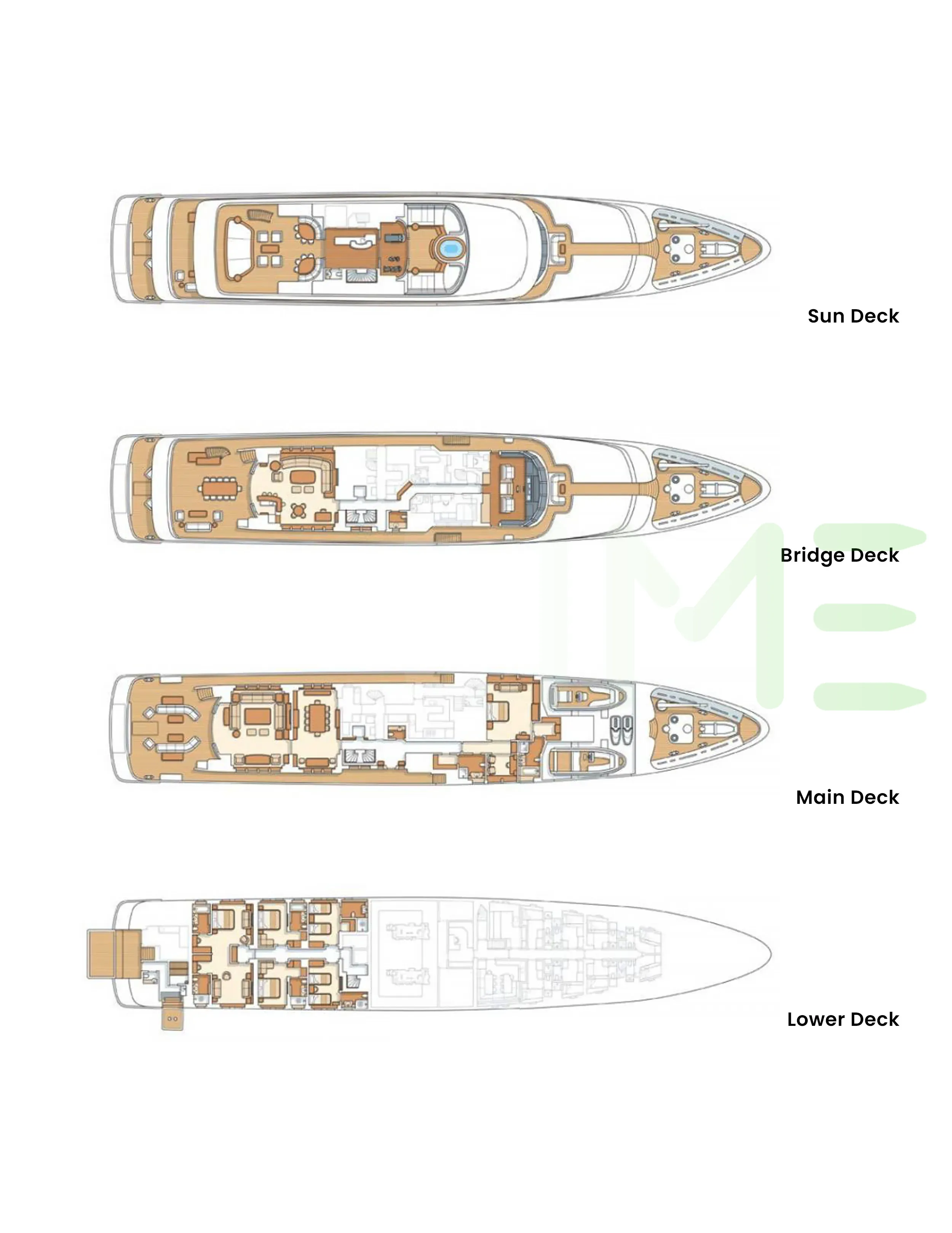 Request plans that include the layout of staterooms, guest areas, and outdoor spaces, as well as crew quarters and work areas.