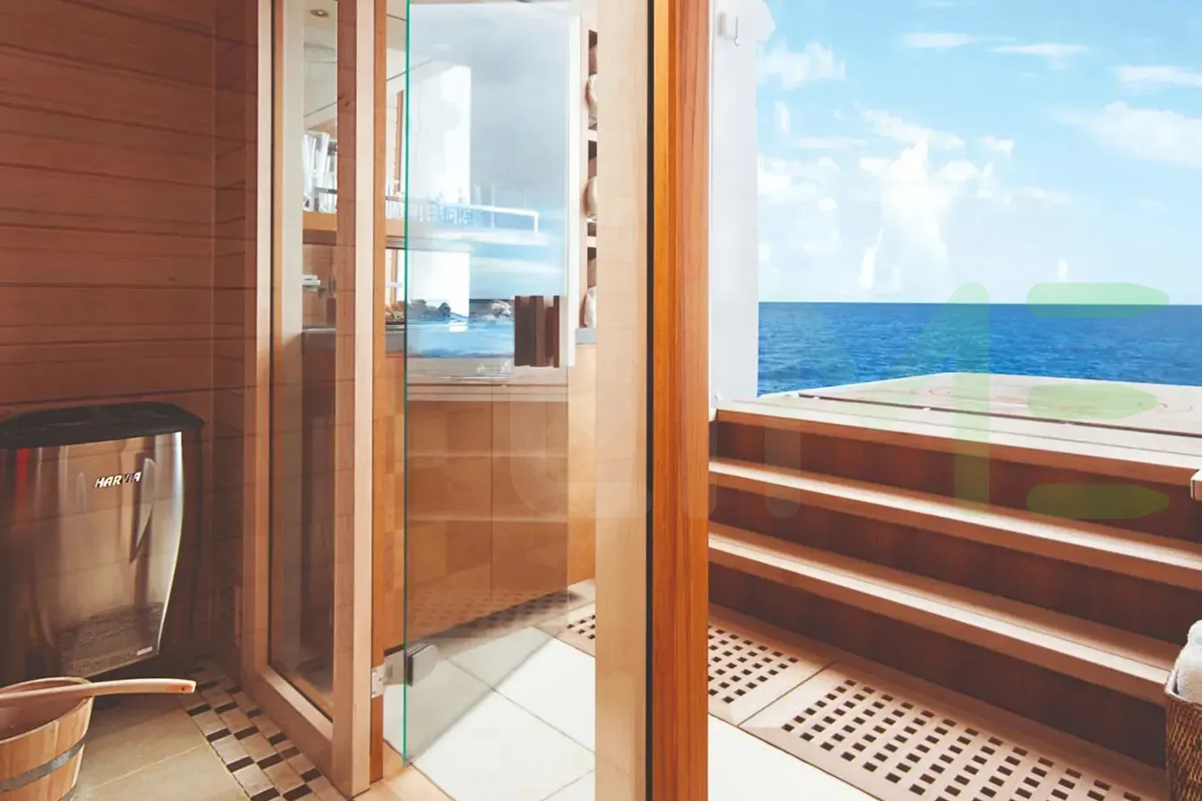 On your charter, you'll find plenty to keep you busy and entertained, notably a sauna to help you detox and regenerate. Even the most discerning of charter guests will enjoy the included beach club and a gym with all the latest equipment is available for a good work out. Sit back with a glass of champagne in the deck jacuzzi.