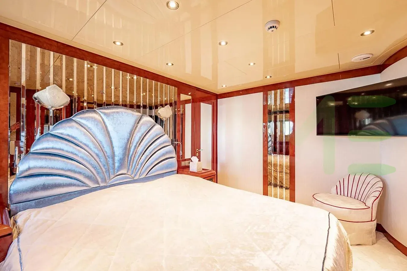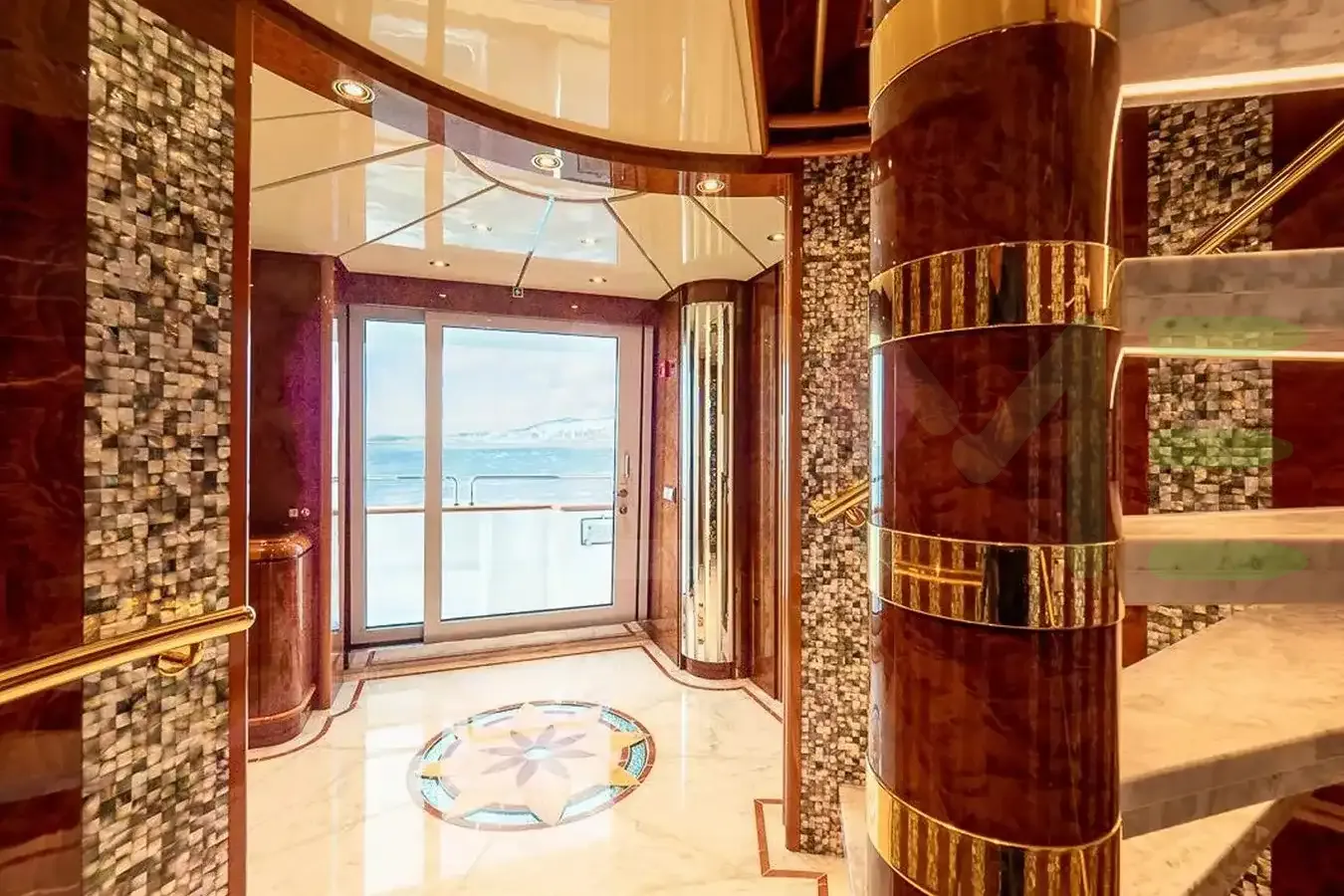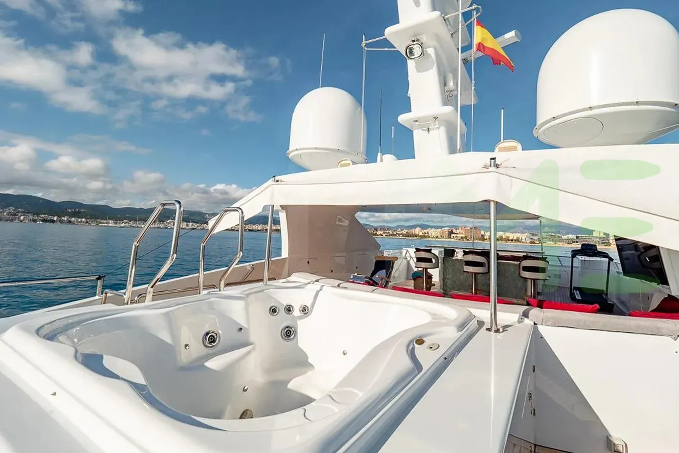 Her features include an elevator, underwater lights, deck jacuzzi, WiFi and air conditioning.