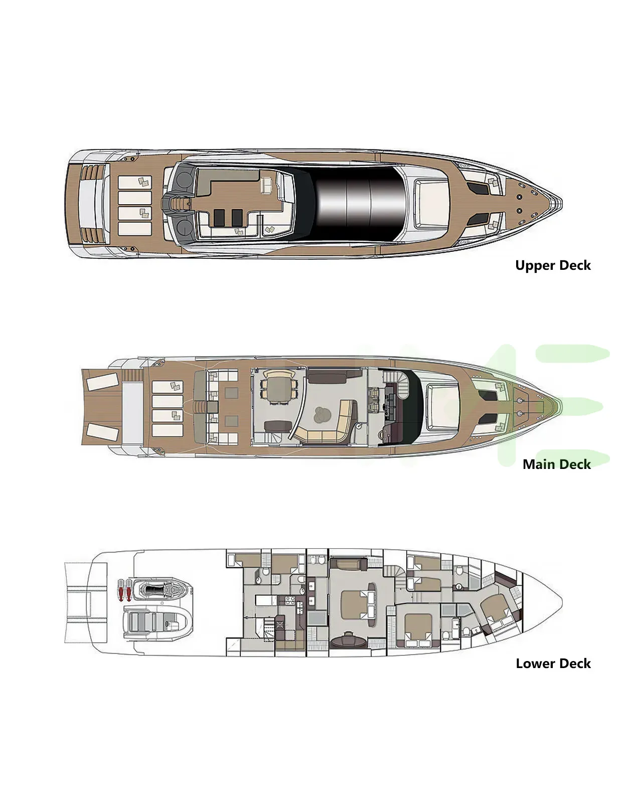 Request plans that include the layout of staterooms, guest areas, and outdoor spaces, as well as crew quarters and work areas.