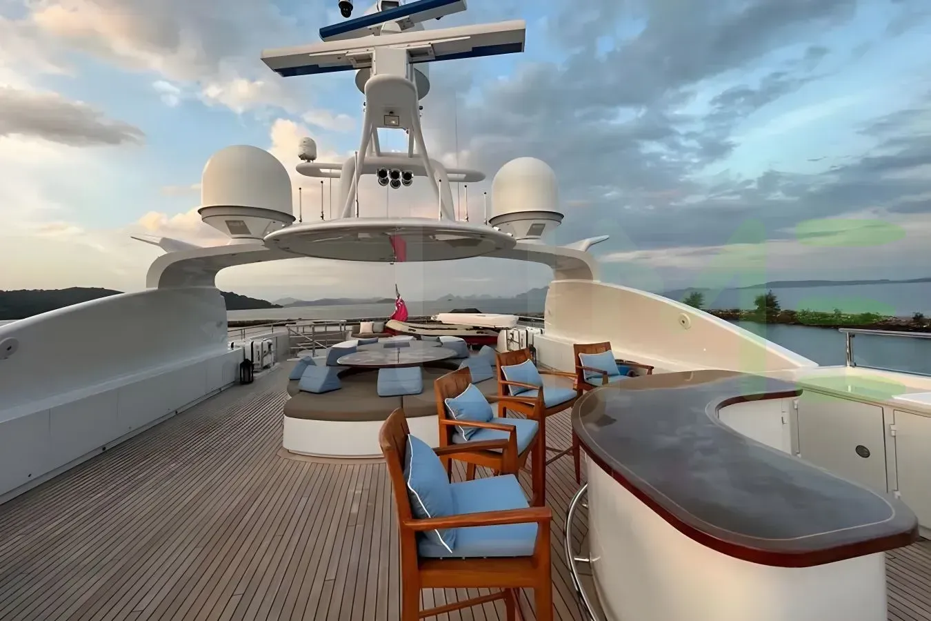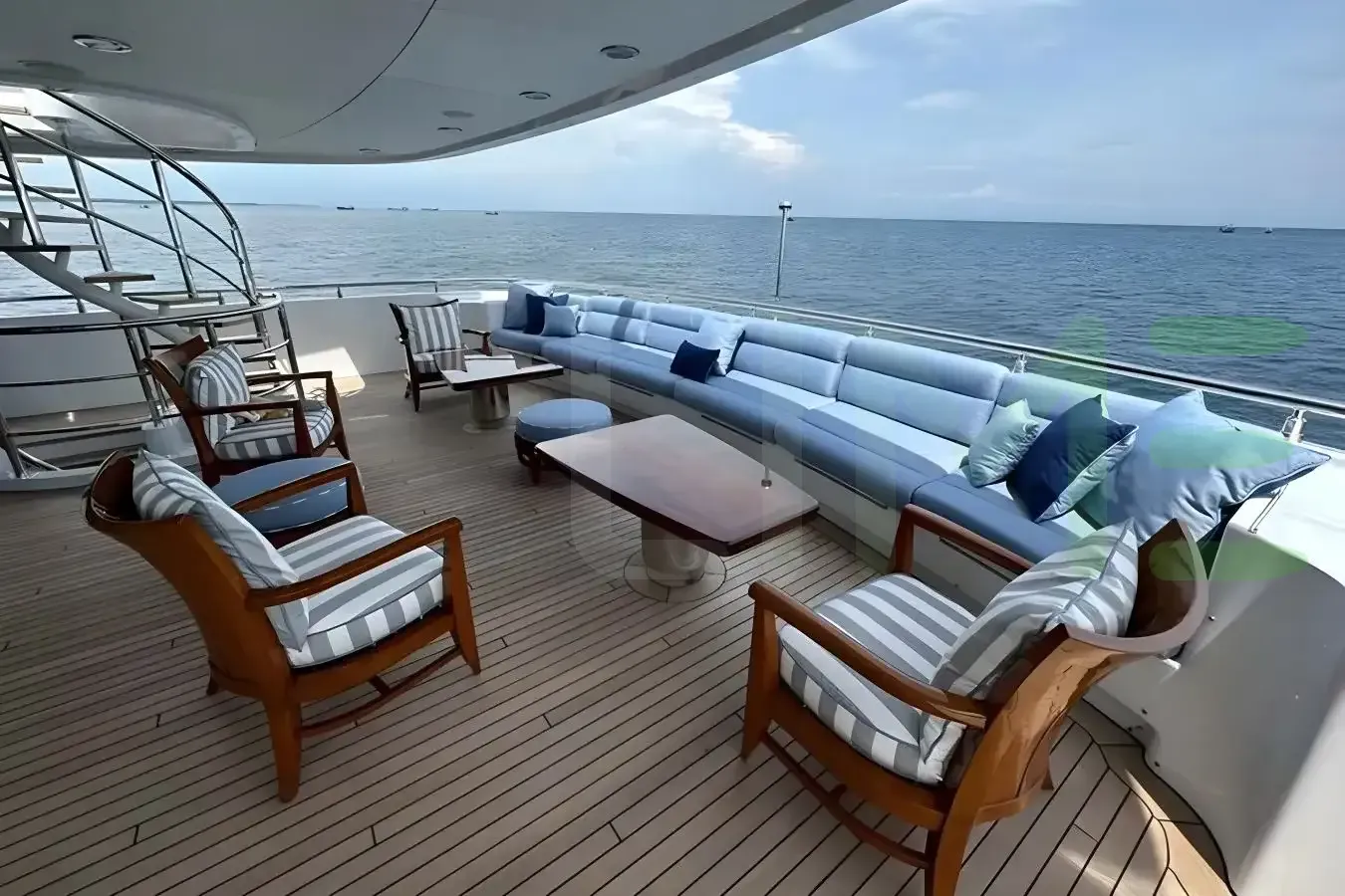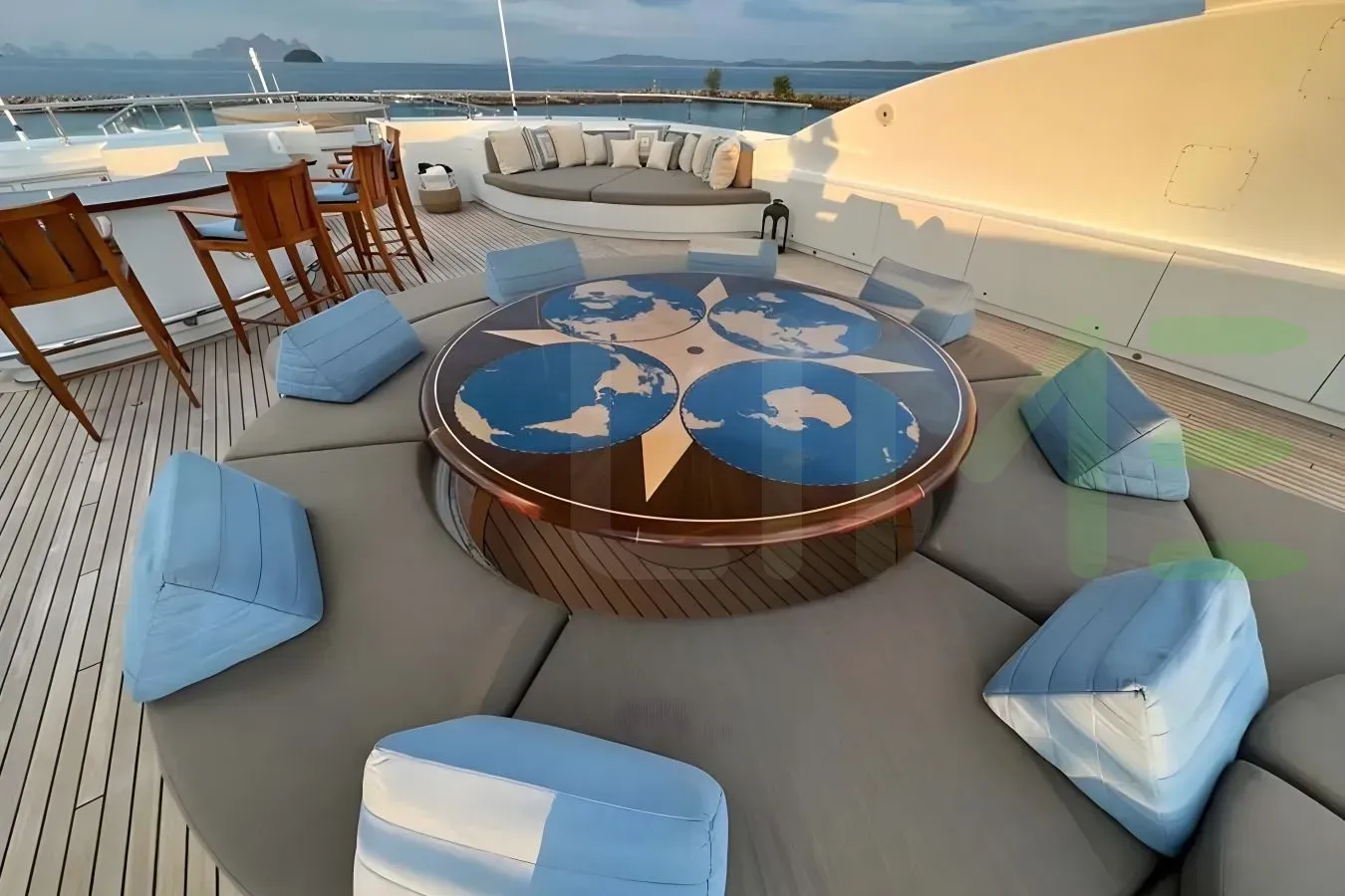 Enhanced by her steel full-displacement hull, and aluminium superstructure, a higher level of seaworthiness and comfort for those on board the LATITUDE yacht for sale has been achieved. The visual appeal of the exterior is complimented by the rich color and distinctive grain patterns of teak decks that lend an air of sophistication to the yacht's appearance.
