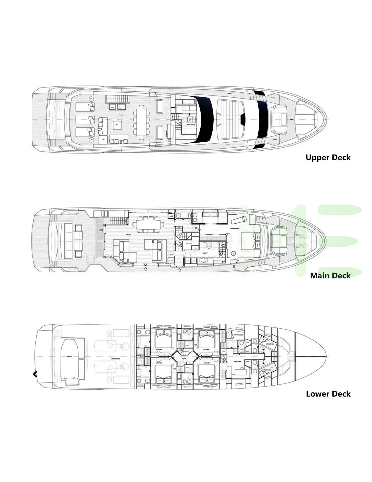 Request plans that include the layout of staterooms, guest areas, and outdoor spaces, as well as crew quarters and work areas.