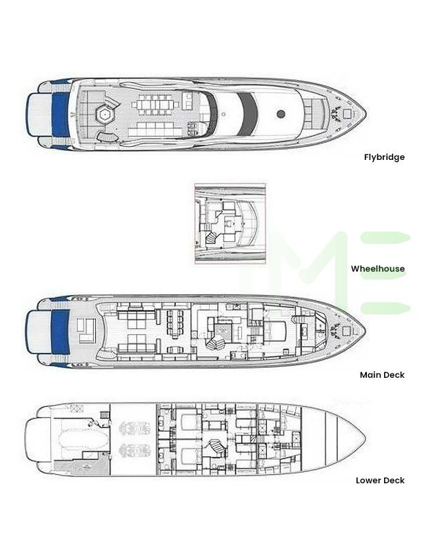 Request plans that include the layout of staterooms, guest areas, and outdoor spaces, as well as crew quarters and work areas.