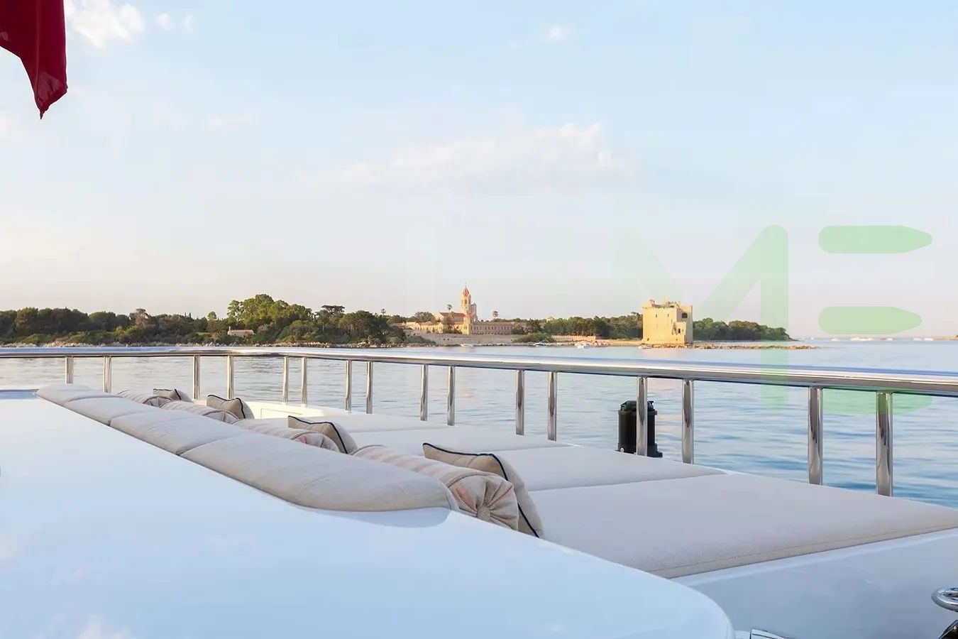 - Vast swim platform with sun loungers and easy access to the yacht's toys