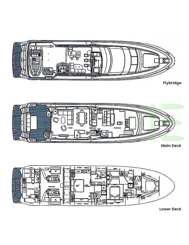 Request plans that include the layout of staterooms, guest areas, and outdoor spaces, as well as crew quarters and work areas.