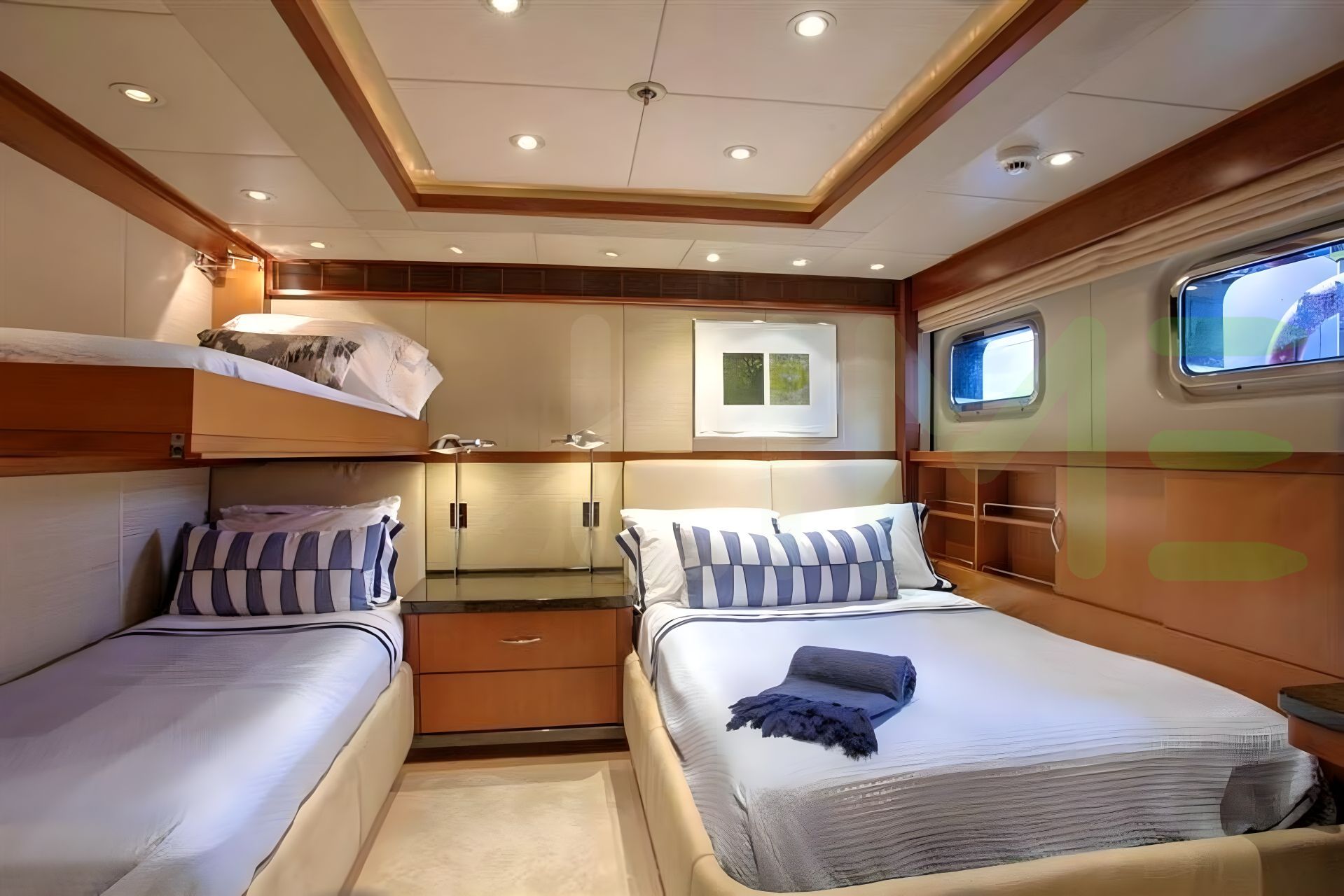 Her features include a gym, deck jacuzzi, WiFi and air conditioning.