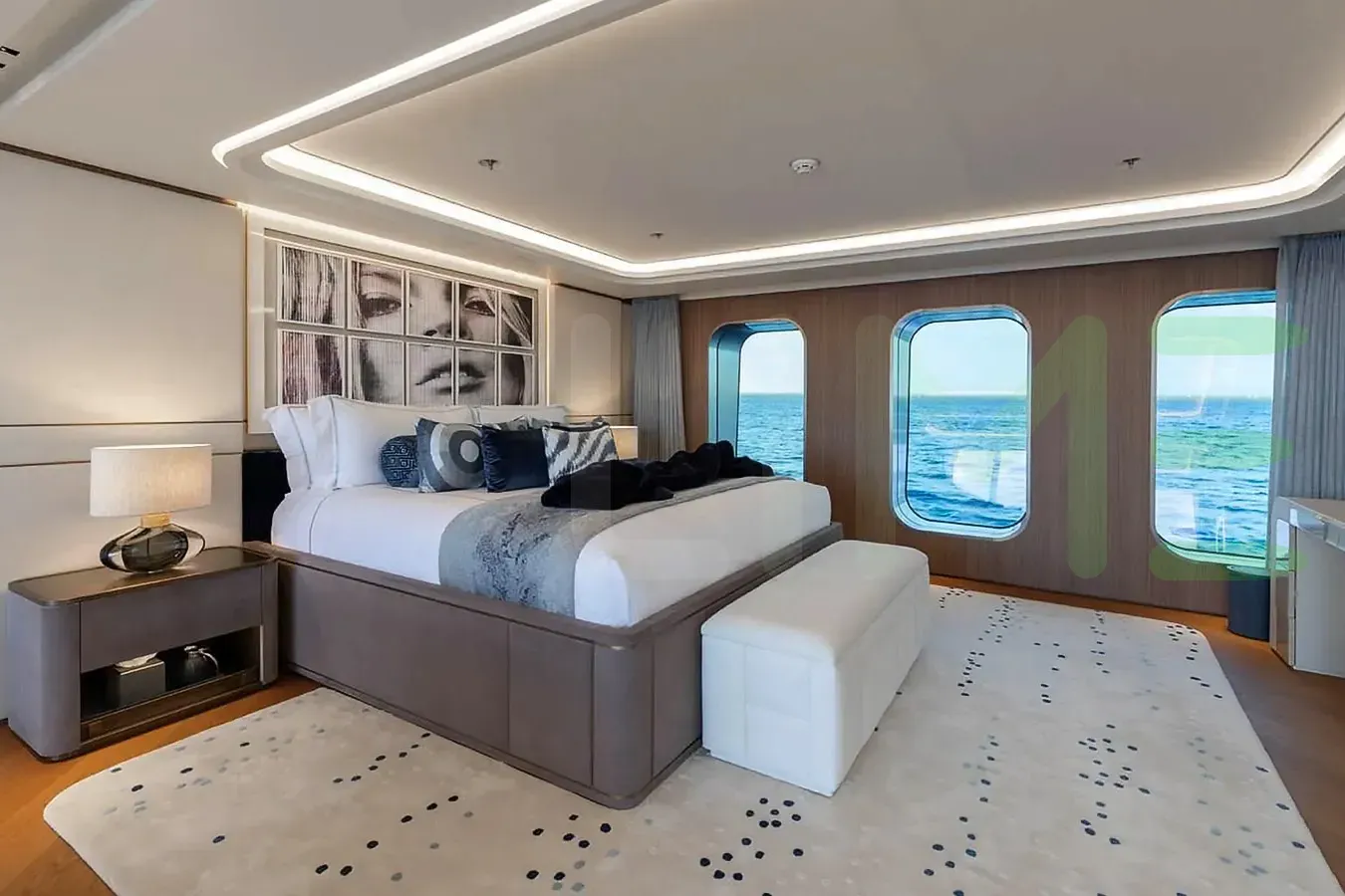 Her features include steam room, sauna, satellite communications, underwater lights, beach club, gym, WiFi and air conditioning.