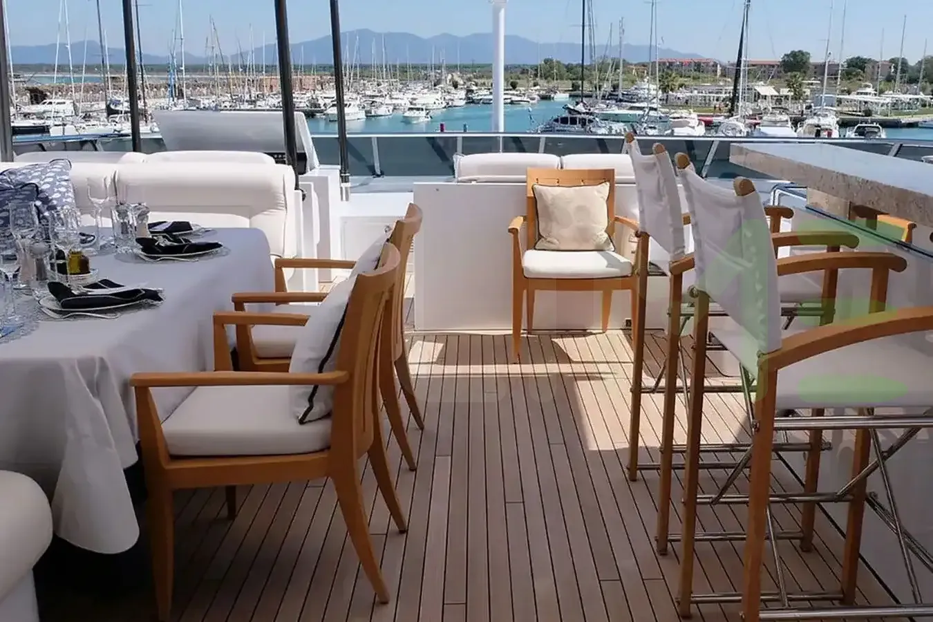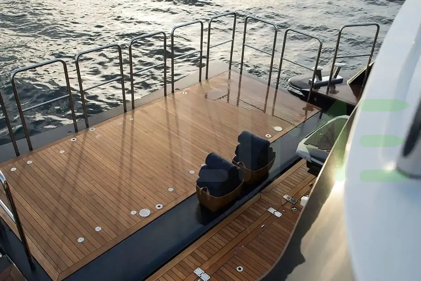 MORDAN is a semi-displacement mono-hull flybridge motoryacht, with a beam of 29' 6" (9 meters), offering stability and comfort during near coastal and inland cruising. The semi-displacement hull shape and draft of 8' 2" (2.5 meters) further enhances her speed, allowing quick sprints from port to port, making her ideal for visiting the maximum number of destinations on your itinerary in the shortest period.