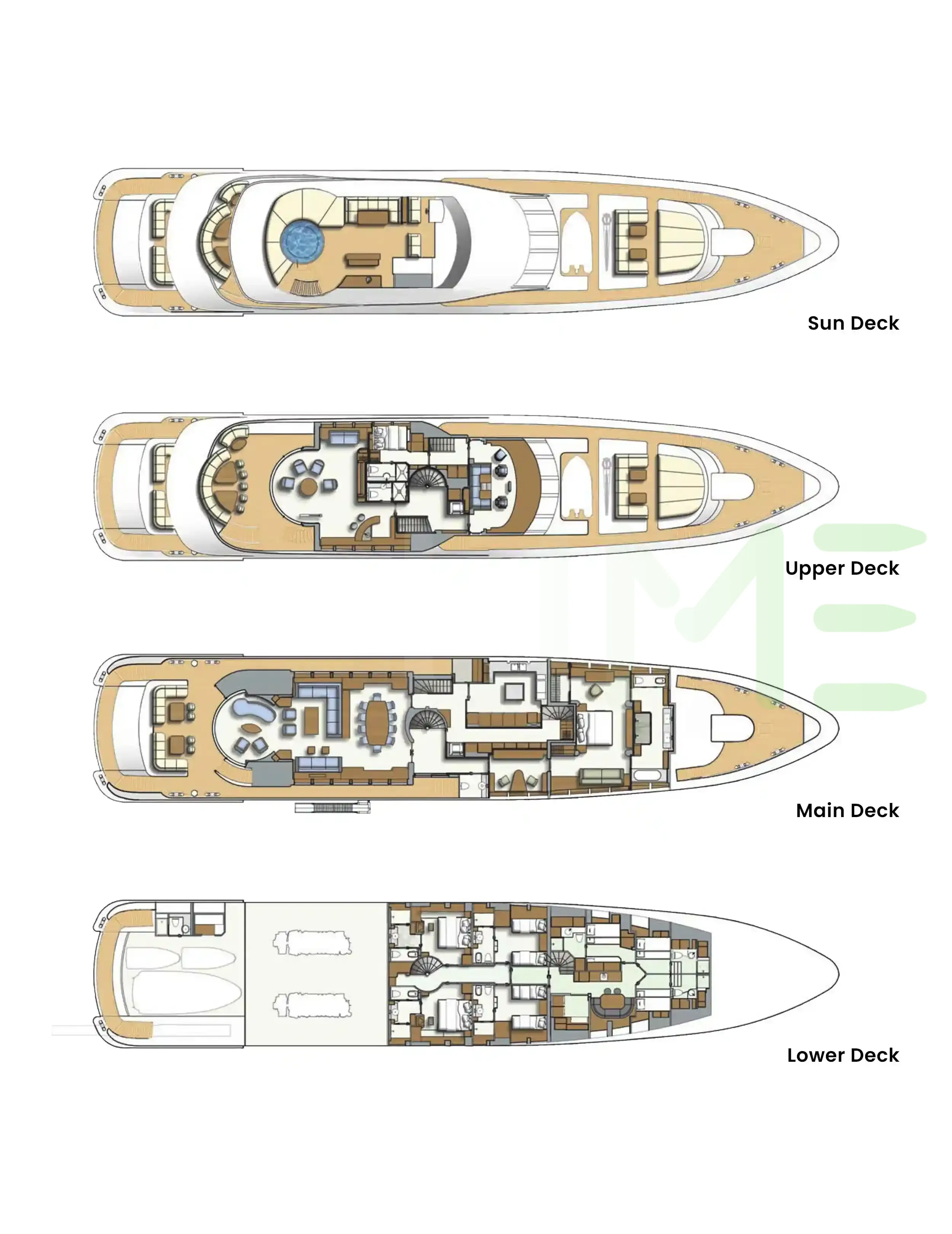 Request plans that include the layout of staterooms, guest areas, and outdoor spaces, as well as crew quarters and work areas.