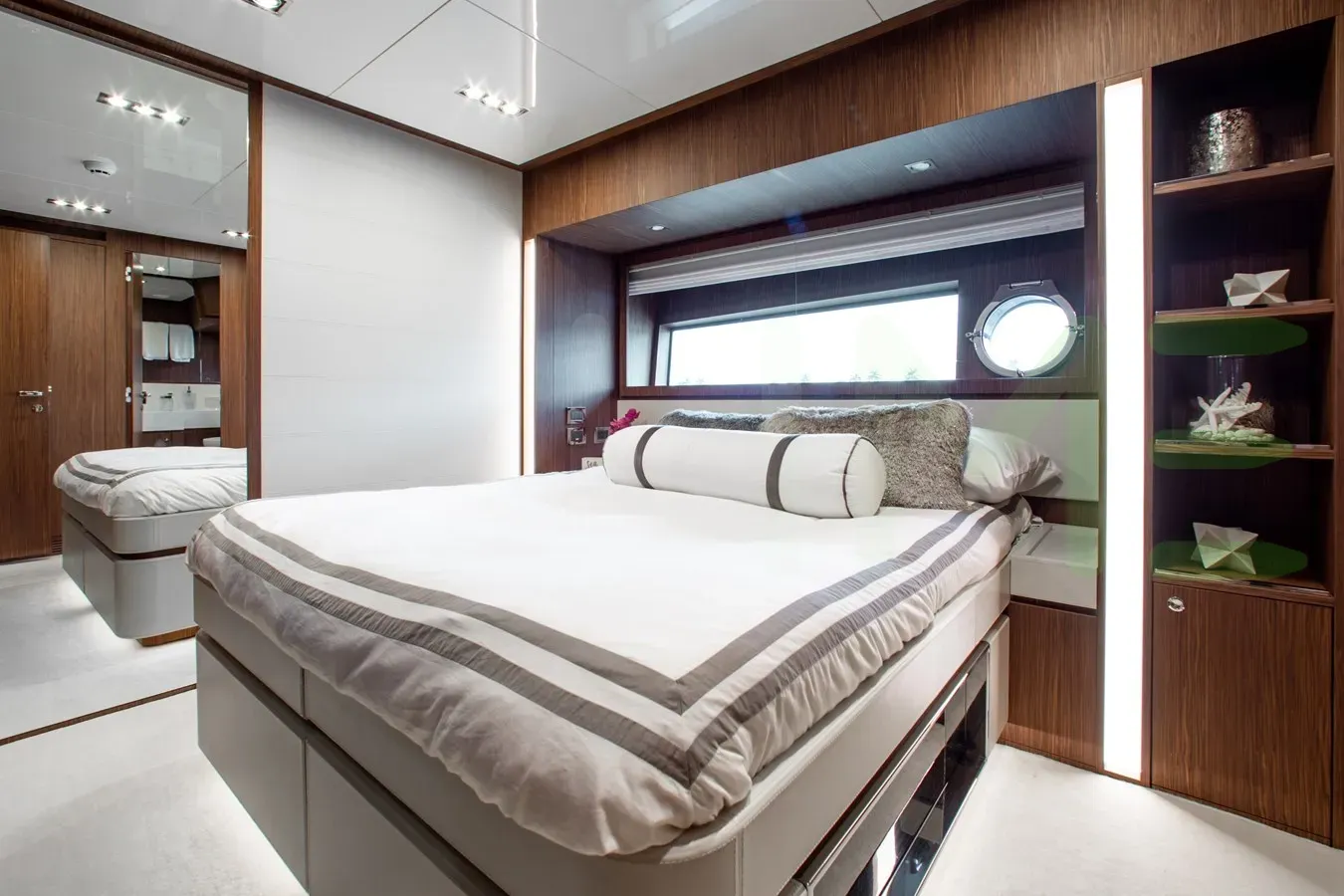 Up to 8 guests can be accommodated on board the yacht MOVIN DAY in 4 staterooms. MOVIN DAY also includes accommodations for 2 crew members, including the yacht’s captain. Whether you envision private escapes or unforgettable voyages, you're invited to discover a world where elegance meets adventure.