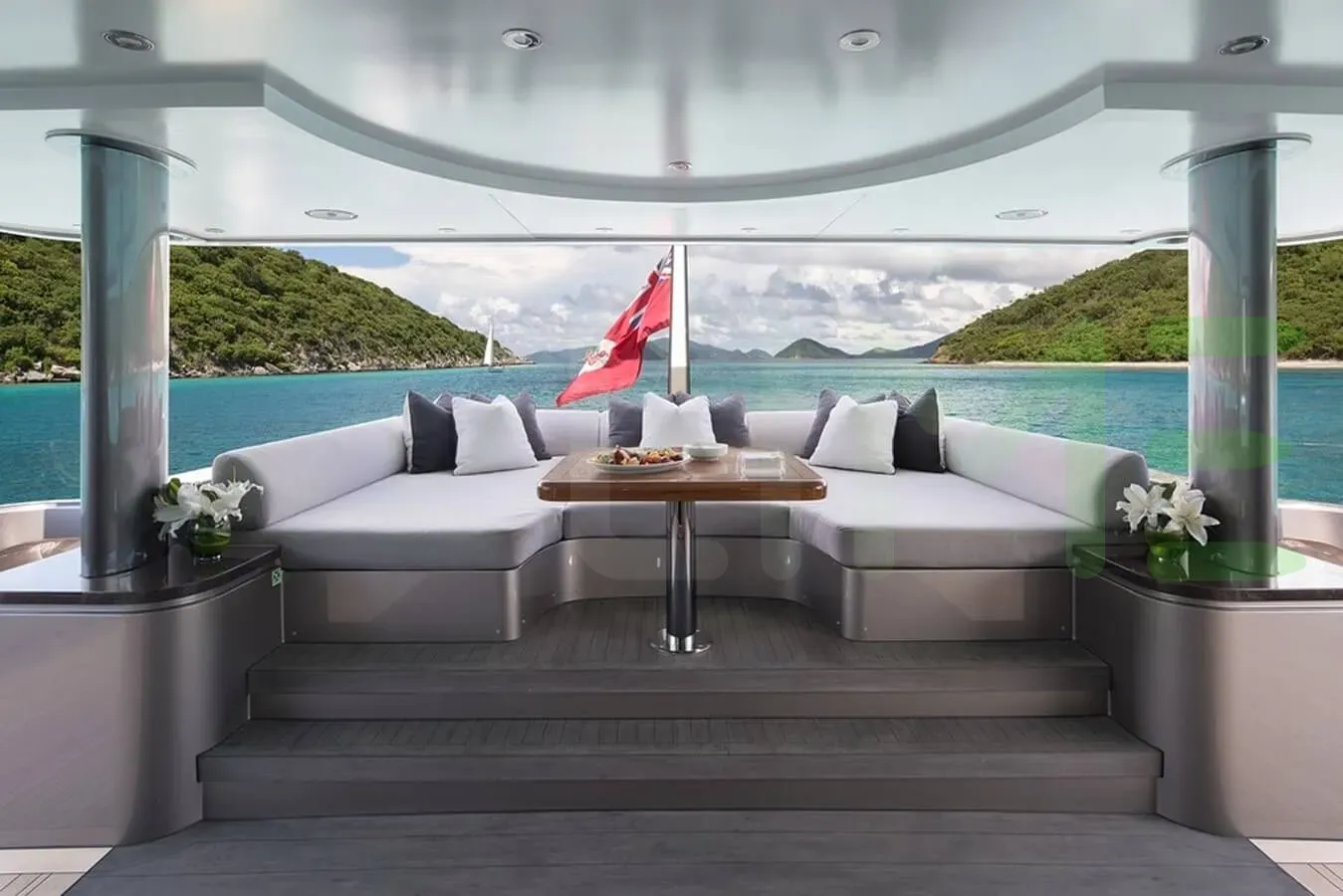 On your charter, you'll find plenty to keep you busy and entertained such as a beach club for you to relax on the edge of the water. Sit back with a glass of champagne in the deck jacuzzi.