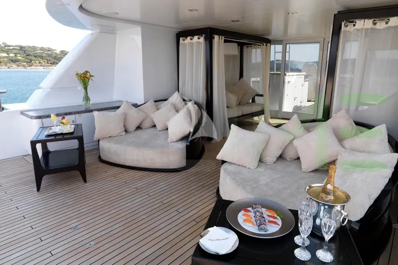 Keeping comfortable and entertained on My Little Violet is easy thanks to the available amenities, particularly a deck jacuzzi, perfect to enjoy the scenery with your favourite drink in hand.