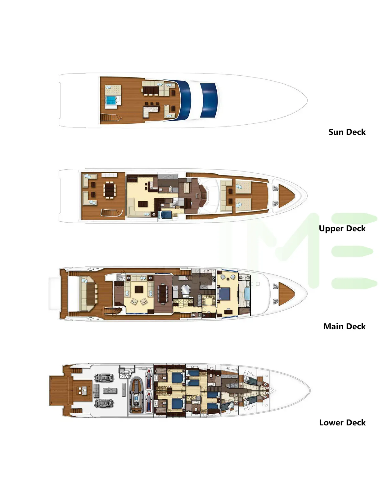 Request plans that include the layout of staterooms, guest areas, and outdoor spaces, as well as crew quarters and work areas.
