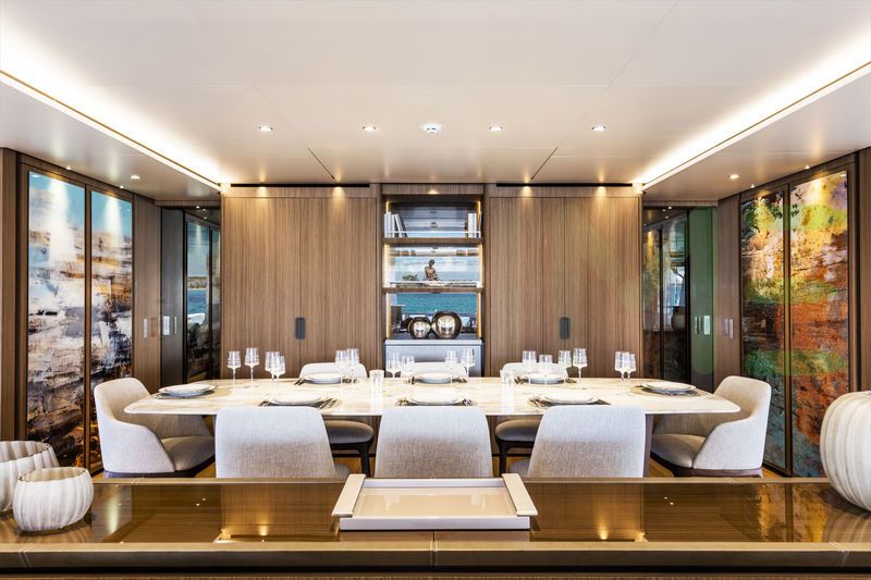 Up to 10 guests can be accommodated on board the yacht NEVER BLUE in 5 staterooms. NEVER BLUE also includes accommodations for 6 crew members, including the yacht’s captain. Whether you envision private escapes or unforgettable voyages, you're invited to discover a world where elegance meets adventure.