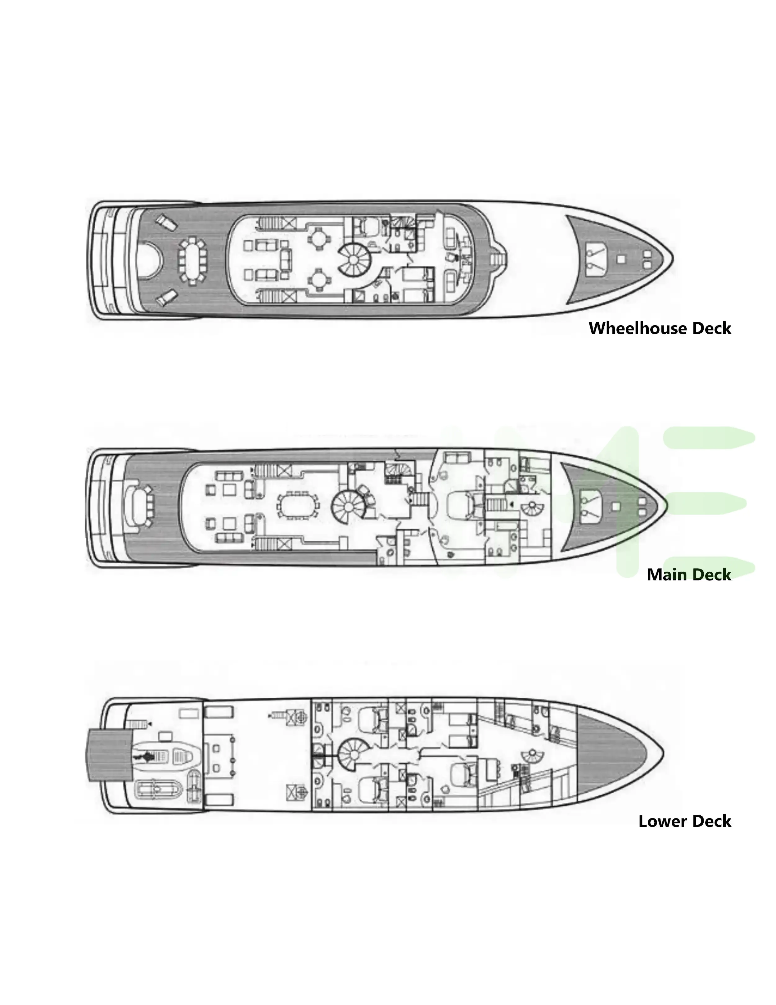 Request plans that include the layout of staterooms, guest areas, and outdoor spaces, as well as crew quarters and work areas.