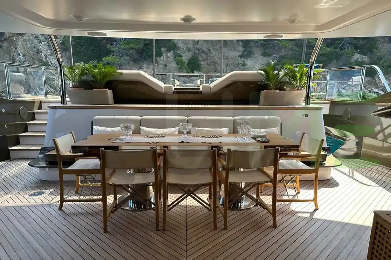 NG is a semi-displacement mono-hull luxury motoryacht, with a beam of 25' 11" (7.9 meters), offering stability and comfort during near coastal and inland cruising. The semi-displacement hull shape and draft of further enhances her speed, allowing quick sprints from port to port, making her ideal for visiting the maximum number of destinations on your itinerary in the shortest period.