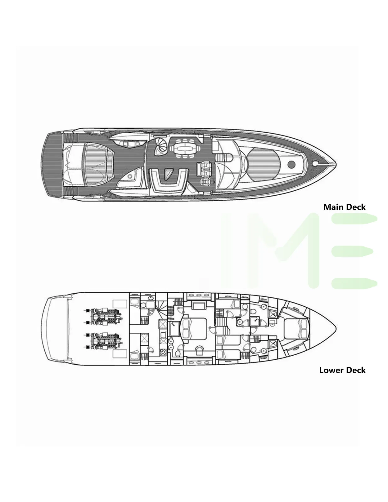 Request plans that include the layout of staterooms, guest areas, and outdoor spaces, as well as crew quarters and work areas.
